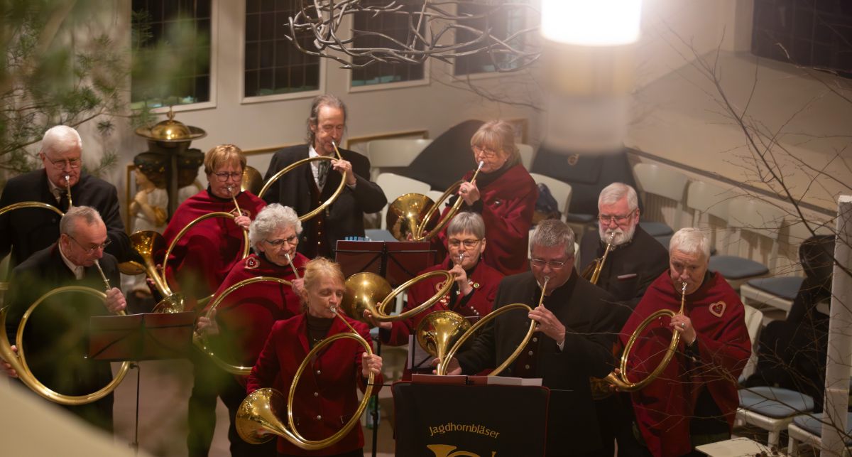 Zu hören gab es eine Auswahl klassischer Jagdsignale und unbekanntere wie auch bekannte Stücke mit Bezug zum Waidwerk, zum Beispiel "Lönsberg-Ruf", "Jäger aus Kurpfalz" und "Im Wald und auf der Heide". Bläsermitglied Wilhelm Bruns führte mit seiner Moderation auf informative wie humorvolle Weise durch diesen Reigen, wodurch die Gäste Einblicke in die Geschichte der Jagd in verschiedenen Ländern, das Leben in Wald und Flur und das musikalische Brauchtum erhielten, während sie Kaffee und frisch gebackenen Kuchen genossen.